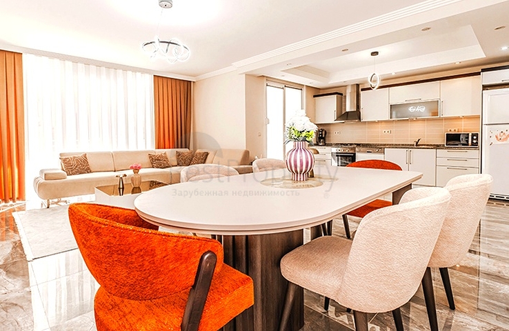 Es wird eine helle Wohnung mit einer komfortablen 2+1-Aufteilung angeboten. Die Wohnfläche beträgt 120 m². Die Wohnung ist komplett möbliert und mit Haushaltsgeräten ausgestattet, bereit für ein komfortables Wohnen ohne zusätzliche Investitionen.